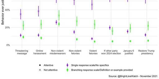 This disconnect between what is being polled and what is being talked about is part of a broader pattern I’ve pointed out in my recent coverage of political violence: Most polls overestimate mass support for political violence. I explain why this is the case, and why this is important for everyone from pollsters to elite journalists to casual news consumers to reckon with.