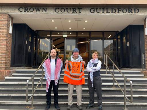Three Just Stop Oil supporters were given suspended sentences of eight or nine weeks at Guildford Crown Court today for disabling petrol pumps at the UK’s largest petrol station in 2022, to demand an end to new fossil fuel projects.[1] Tez Burns and Peter Lay were found guilty of criminal damage and Charles Laurie was