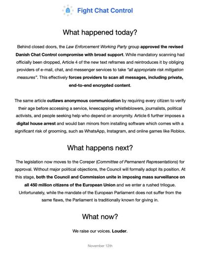 Denmark not only supports it, it was and is the one country that pushes the hardest for it, from the start. Which is weird because to my German perspective, because I wouldn’t exactly associate Denmark with a police-state, quite the opposite actually, especially compared to Germany.