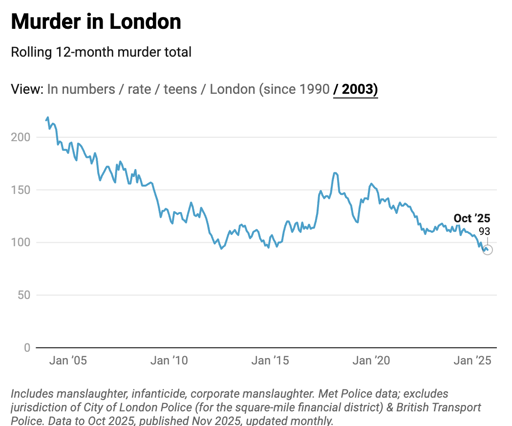 arrow-up1106arrow-down1image93 murders in London in 12 months to October. The city's murder rate is now lowest for decadeslemmy.worldwipemi@lemmy.world to United Kingdom@feddit.ukEnglish · 11 days agomessage-square8fedilink