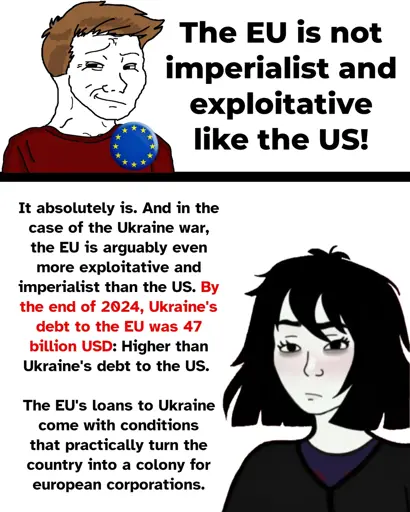 minus-squareHlodwig@lemmy.worldlinkfedilinkarrow-up2arrow-down1·7 days agoBruh… They won’t have the choice. The difference with your mexico comparison is that 15% of russian GDP has already been seized. And “reliefweb.int”… Lol, you are pathetic xD