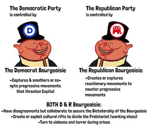If the bourgeoisie turn to violence and terror during crises, how is that different from revolutionaries removing the bourgeoisie from power? I used to identify as an American Democrat but I’m super frustrated with their insistence on useless, vapid displays of “resistance”.