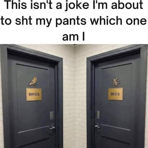So I vote you pick based solely on vibes instead of gender. Hell, I vote we take it a step further and stop gendering bathrooms at all. Just put random unrelated symbols and people can pick which they like. So like one with a book, the other with cheese. Or whatever else you want. Make it a big poop related social experiment.